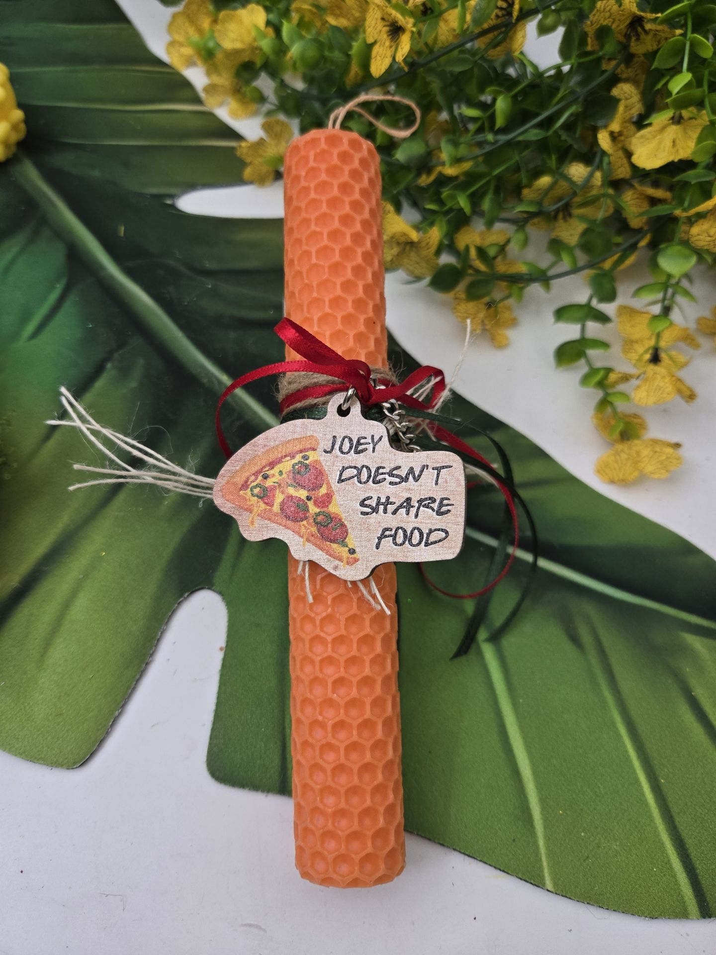 Αν είσαι λάτρης της αγαπημένης σειράς "Τα Φιλαράκια", τότε αυτές οι λαμπάδες είναι για σένα. Οι λαμπάδες περιλαμβάνουν 2 ξύλινα μπρελόκ "I'll BE THERE FOR YOU" το γνωστό και αγαπημένο τραγούδι της σειράς και την αξέχαστη φράση "JOE DOESN'T SHARE FOOD" που μπορείτε μετά την ανάσταση να τα έχετε πάντα μαζί σας. Οι λαμπάδες είναι από 100% μελισσοκέρι, χειροποίητη με ένα ελαφρύ άρωμα. Περιλαμβάνεται και κουτί.