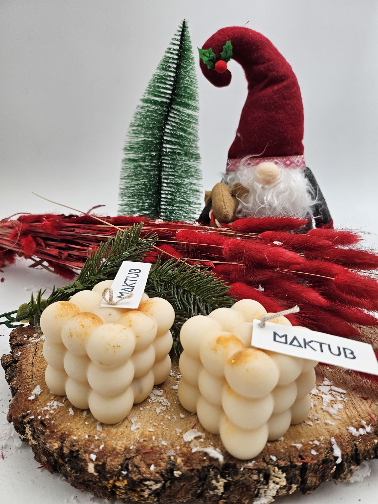 Aρωματικό κερί σόγιας 100% οικολογικό σε σχήμα bubble κύβου με άρωμα Μελομακάρονο. Διακρίνονται νότες από κανέλα, καρύδια, γαρύφαλλο, μέλι, ζάχαρη και πορτοκάλι.