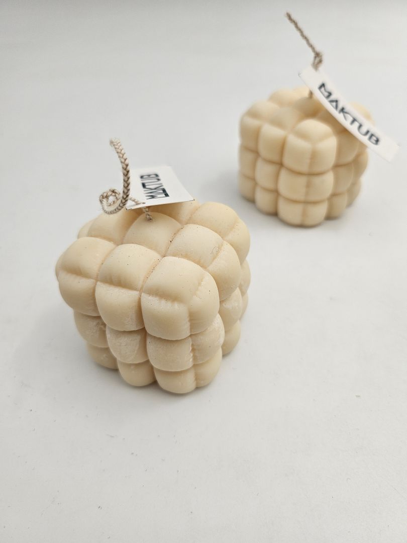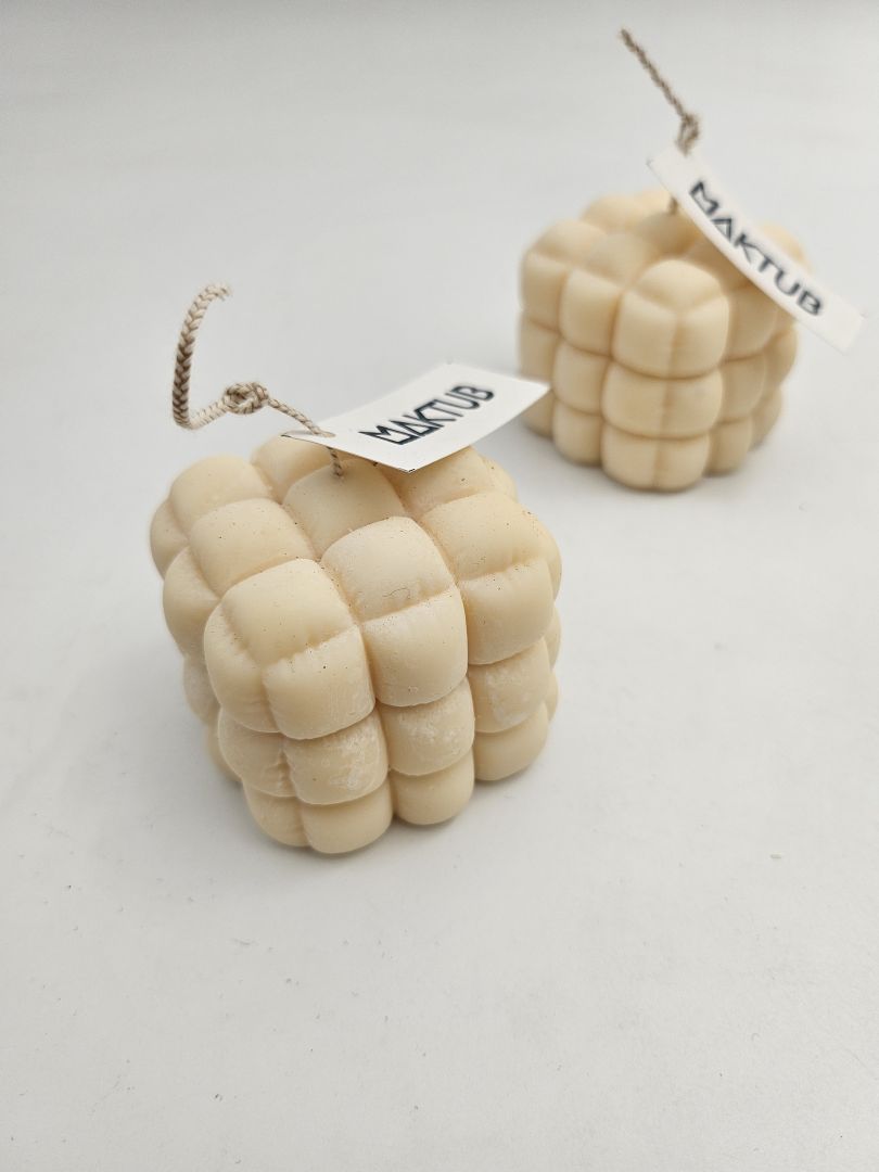 Aρωματικό κερί σόγιας 100% οικολογικό σε σχήμα puffy κύβου με άρωμα Macadamia.