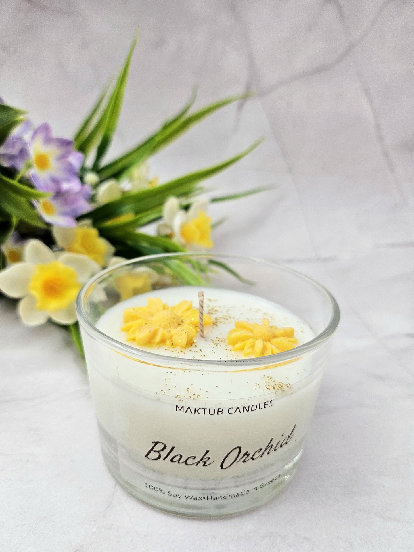 Iris Jar με άρωμα Black Orchid. Aρωματικό οικολογικό κερί από 100% σόγια, σε γυάλινο διάφανο δοχείο. Ιδανικό για τη διακόσμηση και τον αρωματισμό του χώρου σας.